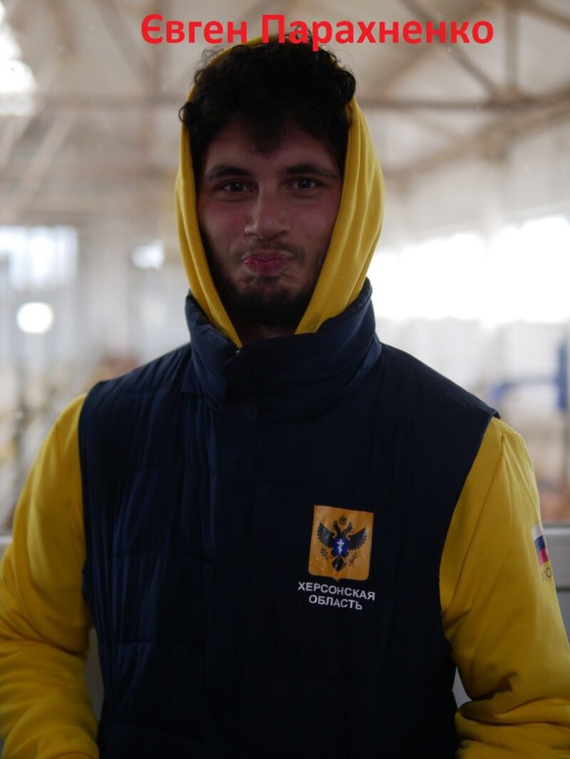 Євген Парахненко, 12 січня 2001 року народження, житель Херсонської області. За інформацією центру “Миротворець“, Парахненко є поплічником російських окупантів, активно бере участь в антиукраїнських пропагандистських заходах країни-агресора.
