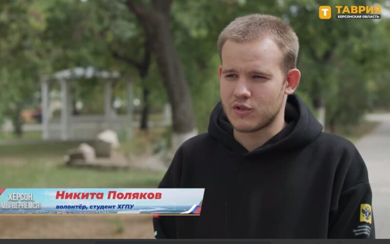 Микита Поляков, 30 липня 2002 року народження, житель Херсона, на російському пропагандистському телеканалі “Таврия” Микита розповідає про те, як він ганебно утік зі звільненого воїнами ЗСУ Херсона.
