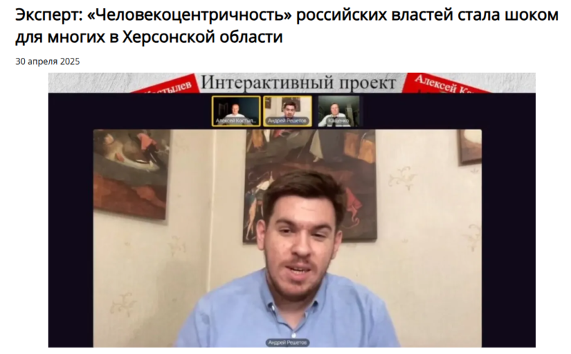 Немає жодних сумнівів, що соцмережі херсонських колаборантів та окупаційних “адміністрацій” ведуть здебільшого не особисто місцеві зрадники, а спеціально навчені російські гастролери. Зазвичай прізвища цих “політтехнологів” ретельно приховуються та й самі вони уникають публічності. Винятком можна вважати краснодарця Андрєя Решетова, який нещодавно розповів про те, як два роки займався Телеграм-каналами незаконної “влади” лівобережжя області.