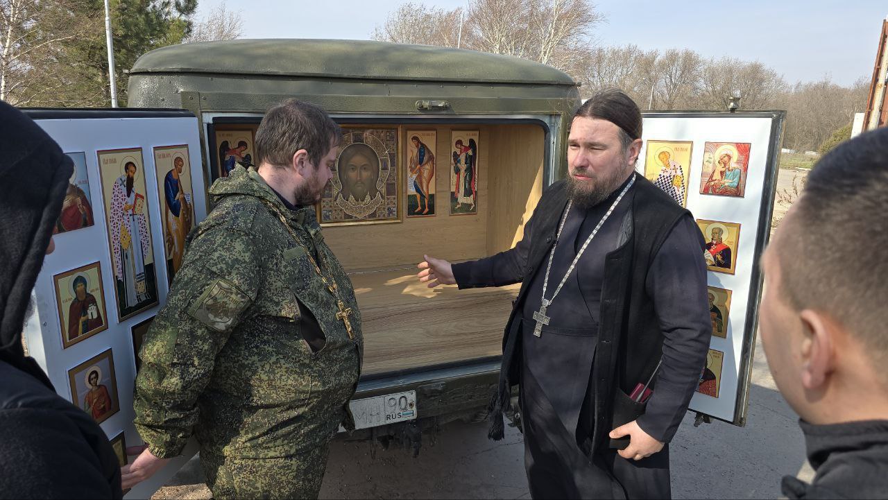 Більше півтори сотні поїздок у «зону сво», запевняють пропагандисти, вже має «спеціальний гуманітарний центр» окупаційної Кримської митрополії РПЦ. Під час одної з поїздок, прозвітували попи у Телеграм, «у бліндажному храмі Казанської ікони Божої Матері був проведений соборний акафіст «Страстям Господнім». У другому бліндажному храмі була проведена літургія, на якій велика кількість військовослужбовців сповідалася і причастилася Святих Христових Таємниць». А ще попам здалось, що церков-землянок на окупованому лівобережжі мало, тому вони привезли з собою ще і так званий похідний храм на базі «УАЗа» – «буханки». Дивно, що при цьому самі священики не вірять у те, що бог на передовій їх «збереже», тому екіпіруються бронежилетами.
