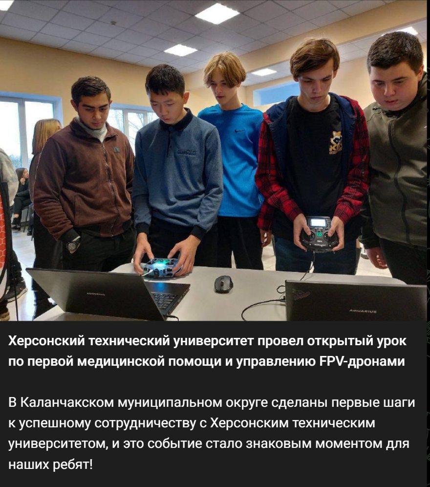 Грудень 2024. Відкриті уроки з військово-патріотичного виховання відбулися в школах Каланчацького та Скадовського «муніципальних округів», не обійшлося без освоювання навичок управління FPV-дронами. Пропагандисти акцентують на необхідності розвивати у молоді навички, необхідні у сучасному світі, та виховувати патріотизм через практичне навчання.