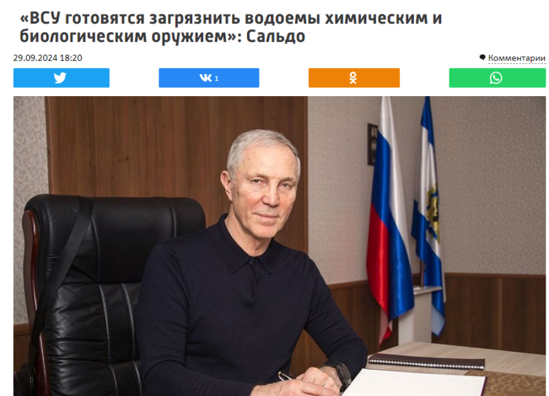 Маячню Сальдо одразу ж підхопили десятки російських ЗМІ, у деяких з яких факт підготовки Україною хімічної та біологічної атаки позиціюють як доконаний та перевірений.