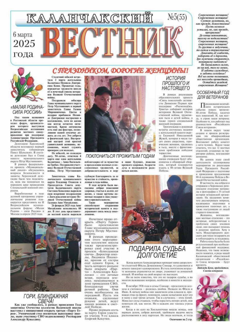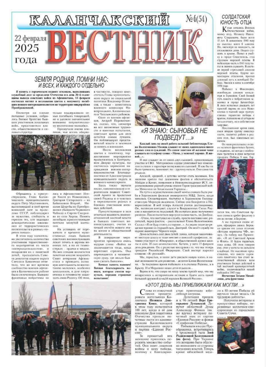 Останні два номери окупаційної агітки «Каланчакский вестник» присвячені «дню защітніка отєчєства» і 8 Березня відповідно.