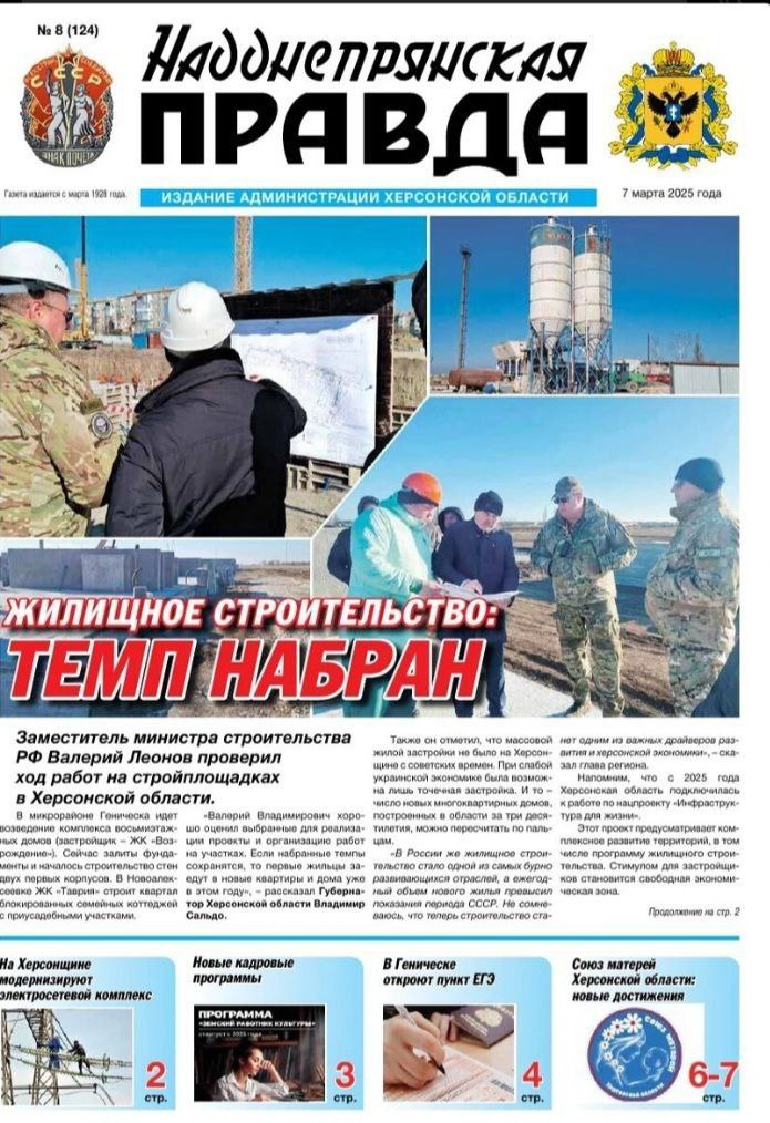 Окупаційна «Надднепрянская правда» бреше про «удари київських бойовиків» по «об’єктах критичної інфраструктури і соціально значимих закладах». «Найбільш красномовним свідченням цинізму і жорстокості військ київського режиму стали цілеспрямовані удари по школах і дитсадках», – вигадують пропагандисти. Бо добре відомо, коли ЗСУ і стріляють, то роблять це виключно по скупченнях окупантів, як було недавно у Великих Копанях. Так само брешуть пропагандисти і про житлове будівництво, яке вже три роки імітують у Генічеську.