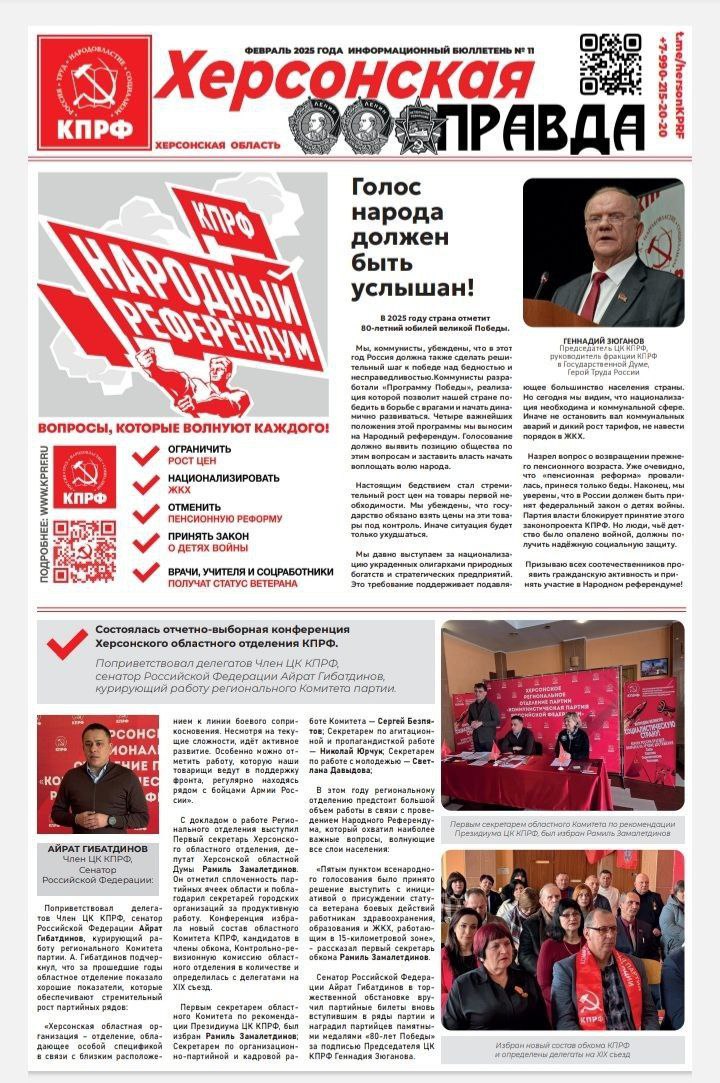 Окупаційна агітка «Херсонская правда», яку випускає окупаційна обласна організація «КПРФ», фантазує, як і божевільний дід з Кремля, про «єдиний народ». «Противник розділив нас, створив хунту, за спинами якої натовські військові складають політні завдання, малюють стрілки, рухають солдатиків», – пише агітка.