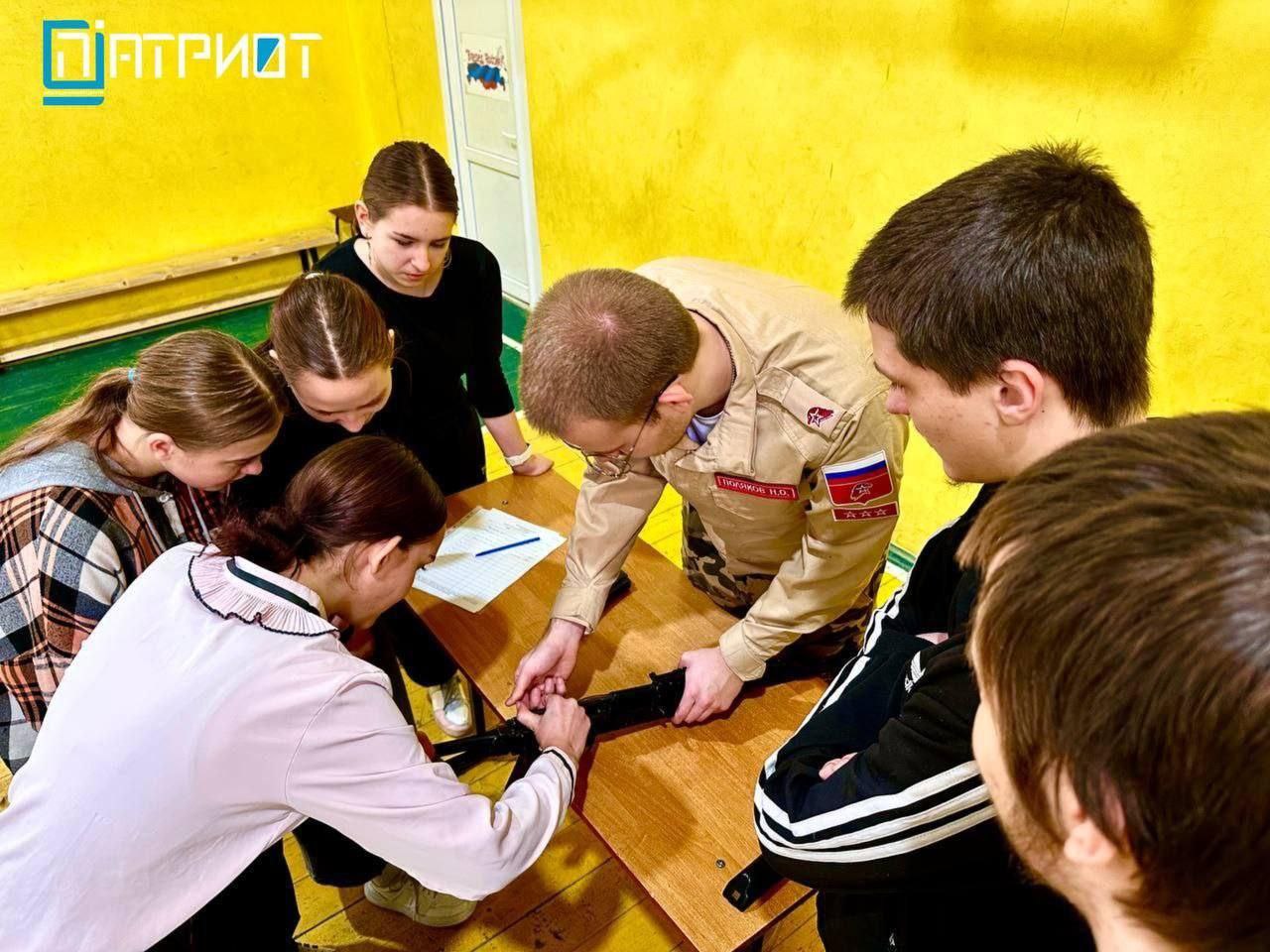 Керівник окупаційного відділення «Юнармії» Нікіта Поляков розповів пропагандистам: «Хлопці і дівчата дізнались про історію легендарного автомата Калашникова, змогли потримати в руках і провести розбірку-збірку культового автомата».