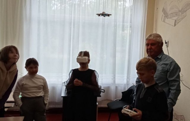Для 14 учнів окупаційної Благодати і вської школи Скадовського «муніципального округу» тренер-викпадач окупаційного спортивного центру розвитку кіберспорту і спортивного програмування Володимир Ємельянов організував майстер-кпас з управління квадрокоптерами.
