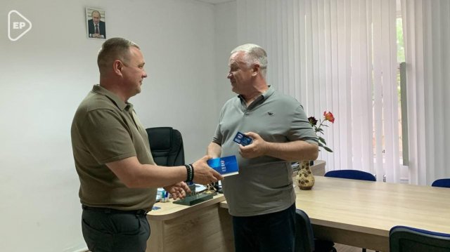 Саме на вулиці вручали пластикові партійні квитки новим членам окупаційної обласної партійної організації «Єдиної Росії» у селищі Рикове Генічеського району.Недалеко, до речі, від елеватору, на якому окупанти влаштували склад боєприпасів, що рік тому несподівано для них «здетонував».«Поступово вручаємо їх всім, хто став і працює з нами плечем до плеча, - розповів про квитки фейковий сенатор і секретар окупаційного відділення «Єдиної Росії» Ігорь Кастюкєвіч.