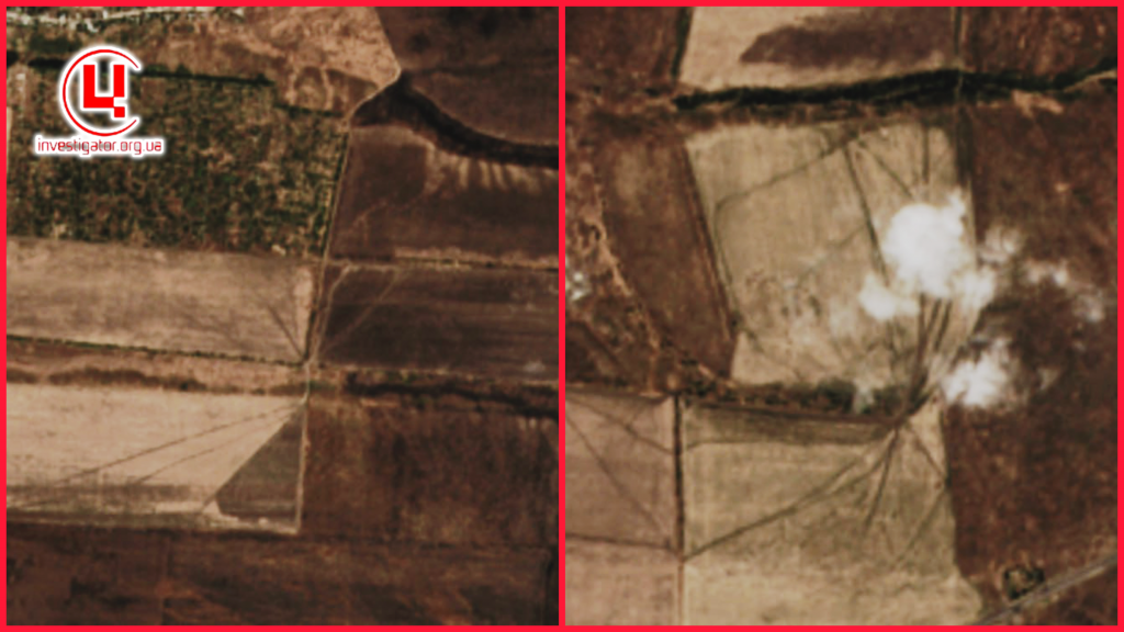 Відбитки важкої техніки на околиці т.о.Маріуполя, 25.09.2023 р. Фото: супутник Sentinel-2, колаж: investigator.org.ua