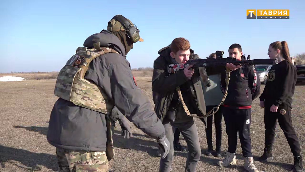 Але "військово-патріотичне виховання" українських дітей, яке Телегін проводить разом з мілітарним рухом, не обмежується розмовами, лекціями та екскурсіями. Він вкладає дітям в руки зброю: він був присутнім на військовому вишколі українських дітей. Її проводили учасники російського вторгнення, які приховували свої обличчя. “Ти мусиш зріднитися зі зброєю”, - згадує Телегін своїх командирів, коли дає коментар окупаційному медіа щодо цих занять.