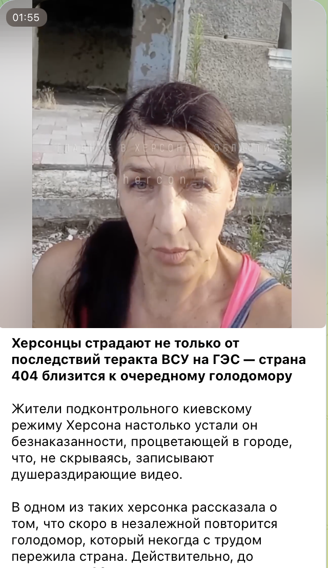Звання найбезглуздішого фейку ми віддаємо повідомленню про “Голодомор у Херсоні”. На відео жінка стоїть на фоні якогось давно покинутого приміщення та розповідає, що нібито будівництво другої черги музею Голодомору в Києві неактуальне, а українська влада намагається позбутися українців через добудову музею. Жінка вважає, що саме фінансування музею завадить купувати дрони та те, що необхідно для перемоги. А пропагандисти роблять висновок, що в Україні буде голодомор.Доволі важко сприймати нелогічну розповідь жінки щодо намірів влади позбутися населення країни через будівництво музею. Вона змішує “створення голодомору” та “будівництво другої черги музею Голодомору”.