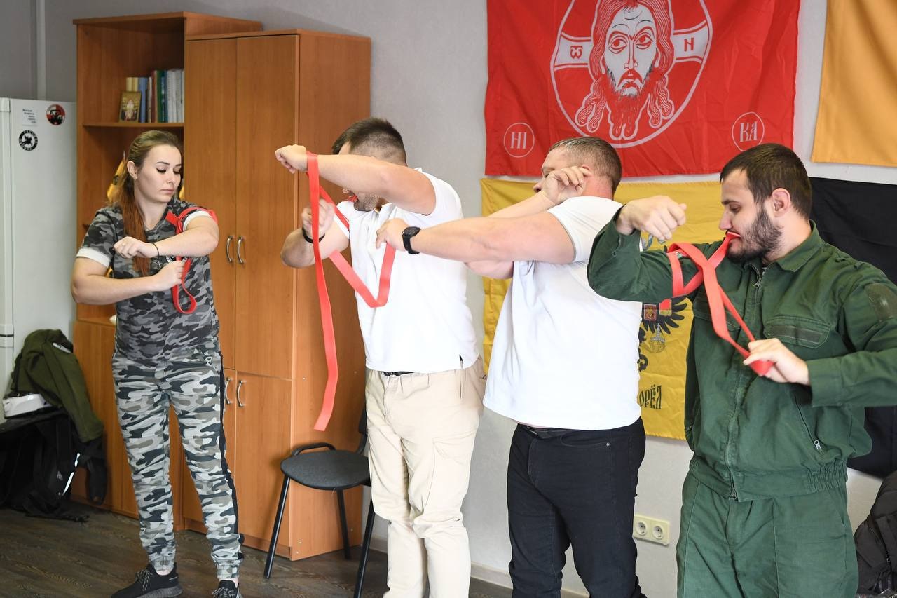 Валєрія Валінкєвіч (ліворуч) на заняттях в Центрі військової підготовки «Кубанская сотня». 2023 рік, Фото: ki-news.ru