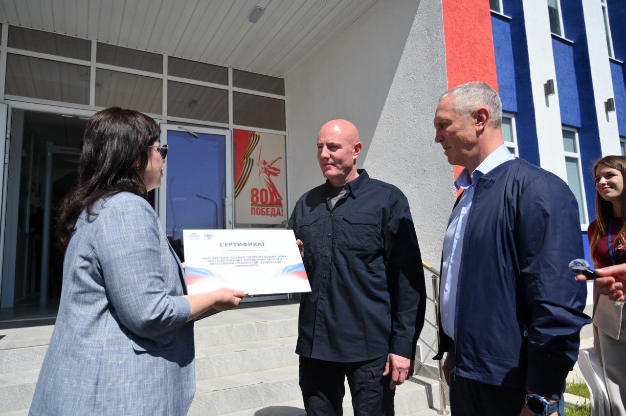 «Також у Генічеську Дмітрій Чернишенко поспілкувався зі студентами Херсонського технічного університету, побував у лабораторіях фізики і хімії, кафедри дизайну, на презентації центру розвитку комп’ютерного спорту і дослідницької лабораторії БПЛА», – повідомили пропагандисти. Не сказали лише, що ті лабораторії обставили українським обладнанням, вкраденим у Генічеському училищі № 17. Та і сам «університет» окупанти не будували. Просто пофарбували у кольори російського прапора порожню триповерхову споруду біля колишнього винзаводу.