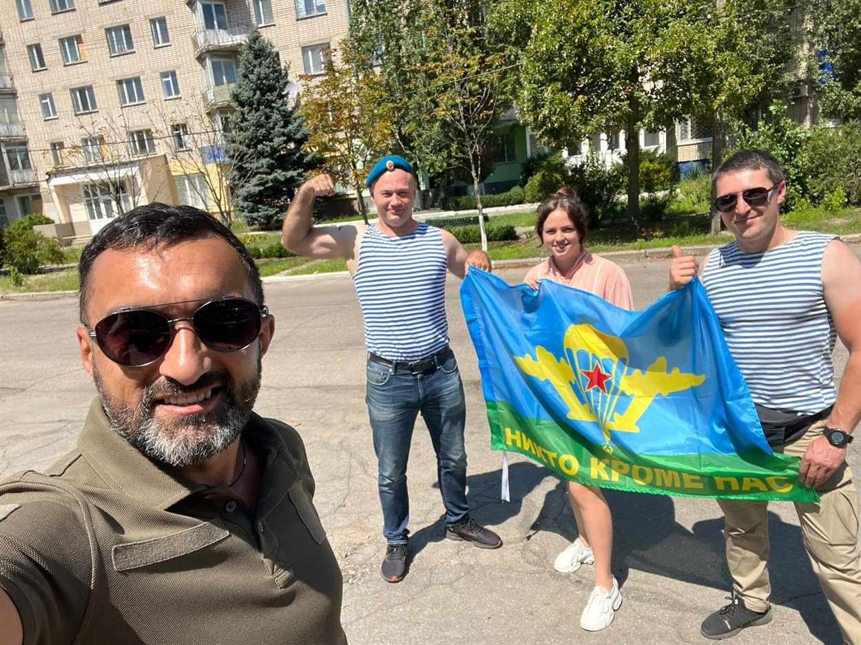 Зате зі своїми селфі засвітилися відомі колаборанти Руслан Агаєв та Максим Карий, які на побігеньках у гауляйтера Володимира Леонтьєва. Ці “хлопці Ківи” (колишнього нардепа) радісно позують із місцевими колаборантками, забражаючи “всенародне свято”.