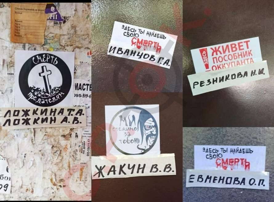Також як повідомляє ТГ-канал «Каховський рух», «небайдужі громадяни попрацювали у Новій Каховці. Пройшлися за адресами так званих «голів виборчих комісій». Поки що залишили тільки записки, але ймовірно, що незабаром колаборантів там зустрінуть інші подарунки».