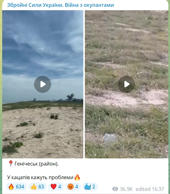 Російські пропагандисти намагаються переконати, що ЗСУ нібито завдає ударів по цивільній інфраструктурі на Арабатській Стрілці.Так, мережею поширюють відео з клубами диму на окупованій території Генічеського району. Російські ресурси підтверджують “прильоти”, але у своєму дусі вже звинувачують ЗСУ в атаці по цивільним, пише медіацентр IPC-Генічеськ.На одних проросійських ресурсах бачимо звинувачення, що ЗСУ нібито завдає ударів по цивільній інфраструктурі, зокрема, по дитячій базі відпочинку.