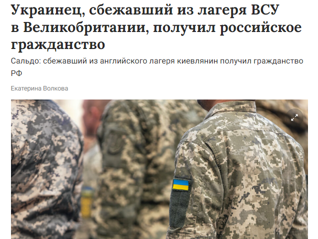 “Житель Києва, який після примусової мобілізації зміг втекти з навчального табору Збройних сил України у Великій Британії та дістатися Херсонської області в Росії, отримав громадянство РФ за спрощеною процедурою, оскільки вона виходець із Херсонської області. Тепер має право на всі види соціальної допомоги, передбачені російським законодавством”, – повідомляє Сальдо.