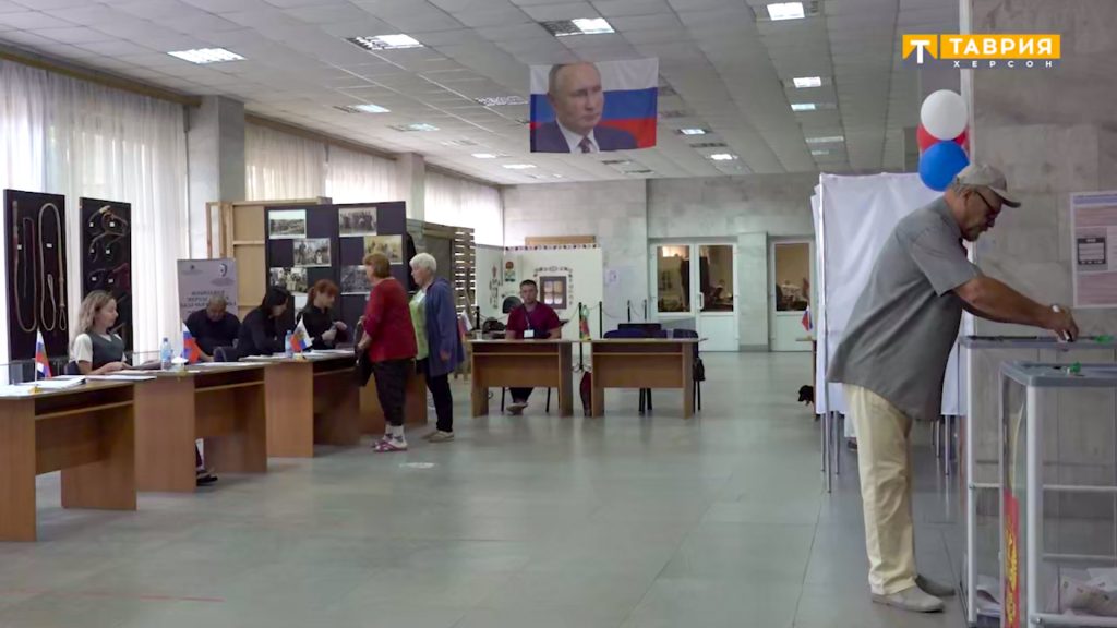 На площі біля Скадовського палацу культури мешканців окупованого міста, які прийшли взяти участь в організованих загарбниками псевдовиборах, пригощають кавуном і кашею, але голосують дуже мало людей.Херсонський прокремлівський телеканал «Таврія» зняв сюжет про голосування в Скадовську, де можна побачити, що в місті дуже низька явка на псевдовибори.Підконтрольний окупантам глава Скадовського муніципального округу Сергій Швайко та інші місцеві колаборанти говорили про великий інтерес мешканців міста до окупантських виборів, про чималу кількість бажаючих проголосувати.