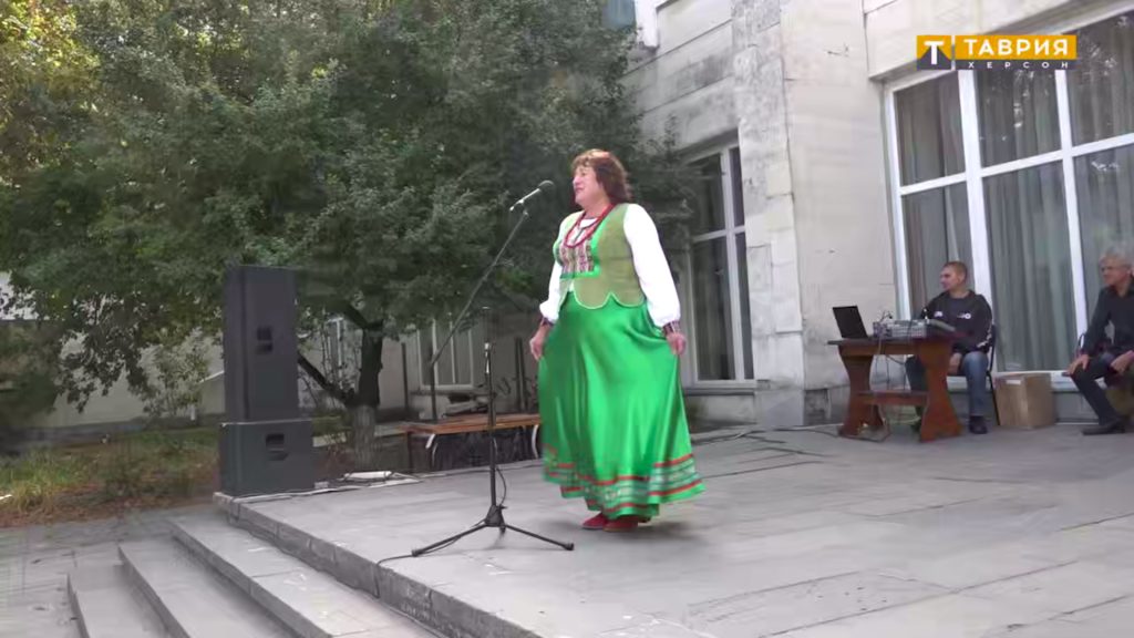 Немає натовпу бажаючих проголосувати і на площі перед палацом культури. Скоріше за все, тому в сюжеті пропагандистів і немає вуличних зйомок, зроблених загальним планом. Бо тоді буде видно, що площа – майже порожня, що спроба заманити людей частуванням провалилася, а самодіяльні артисти-колаборанти співали для купки людей.