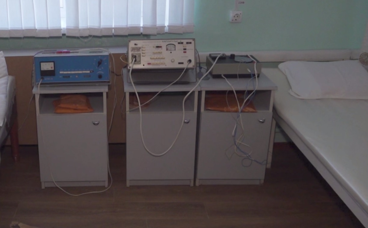 Фізіотерапевтичне відділення у Каховській центральній міськлікарні, де окупанти встановили вкрадене медобладнання. Фото: скріншот відео ТРК «Таврия».