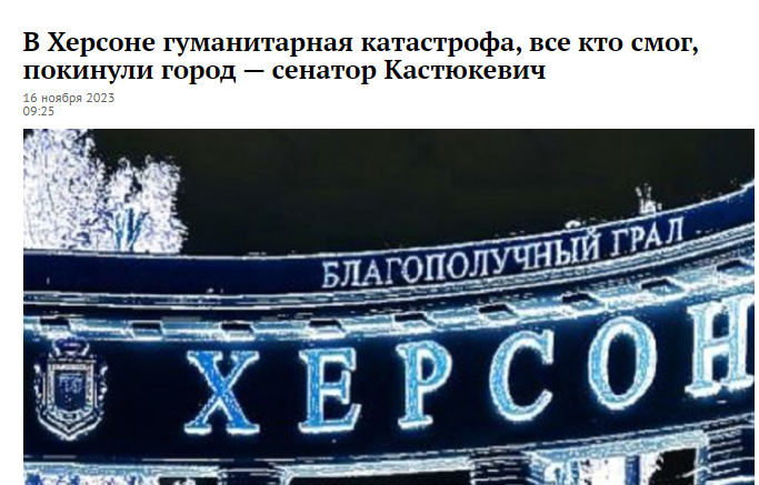 “У популярному серіалі “Гра престолів” часто звучала фраза “Зима близько”, яка служила девізом одного з домів Вестероса. Херсонську область, звичайно, з цією казковою країною не порівняєш, але розмови про майбутню зиму виникають тут дедалі частіше. Особливо хвилює це питання місцеве населення, якому доведеться відчувати всі примхи погоди на собі, а десь навіть опалювати своє житло дровами”, – поетично починають свій матеріал російські пропагандисти про те, що херсонці цього року точно вимруть.