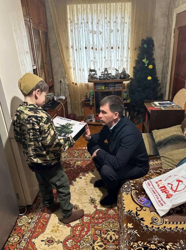 У Новотроїцькому, до речі, окупант не лише з гауляйтеркою євгенією кузьменко сфотографувався, а й до хлопчика поприставав, якому привіз подарунок і попросив це сфотографувати. Як і його кумир путін.