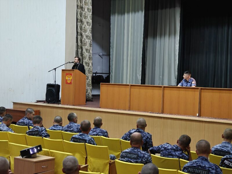 Максим Тарасенко “патріотично виховує” росгвардійців в окупованому Криму. Фото: російські джерела. Червень 2024 року.