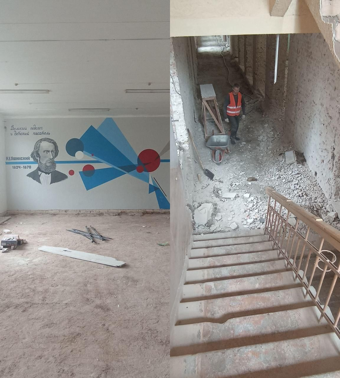 Ремонт, який роблять російські окупанти в Генічеській санаторній школі. Фото з тг-каналу "Обізнаний Генічеськ"