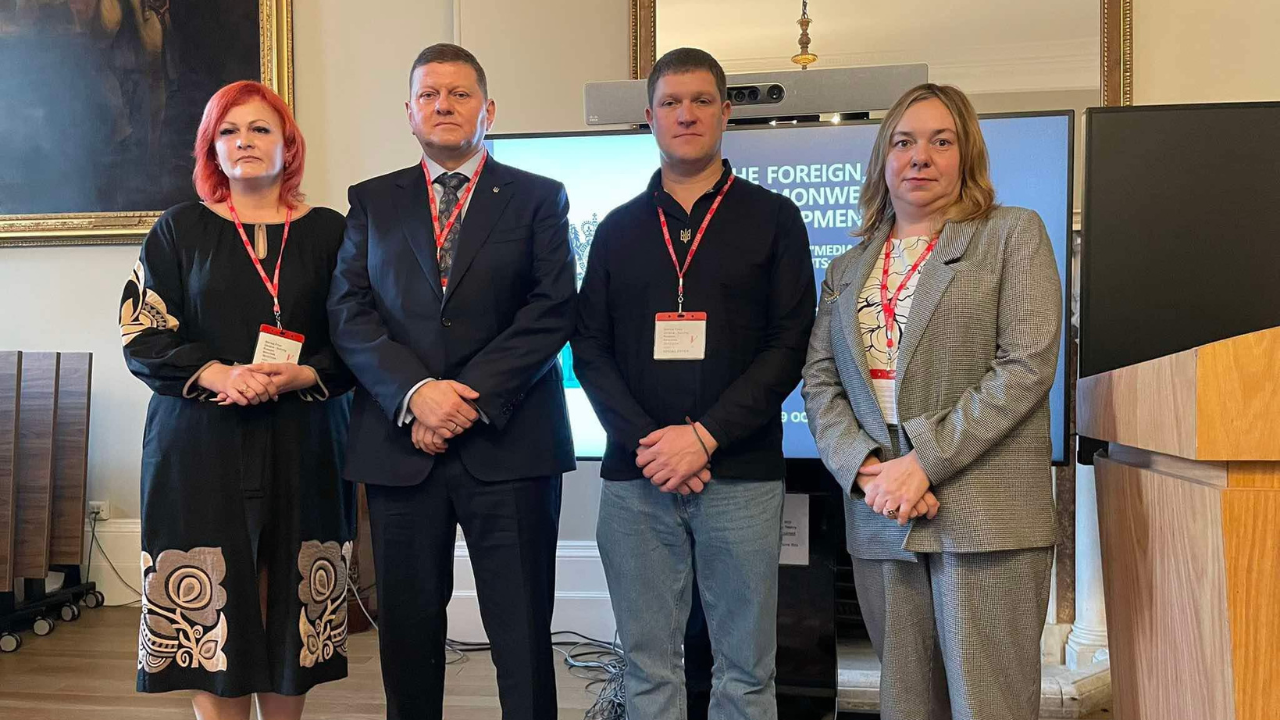 Григорій Головко (другий праворуч) на заході у Великобританії, на якому він поділився історією свого полону з дипломатами. Фото: МІПЛ