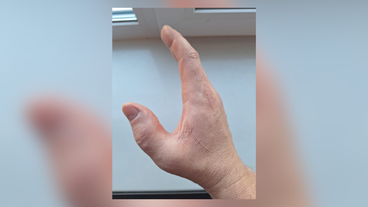 Палець Григорія, який йому зламали росіяни. Фото надане МІПЛ потерпілим