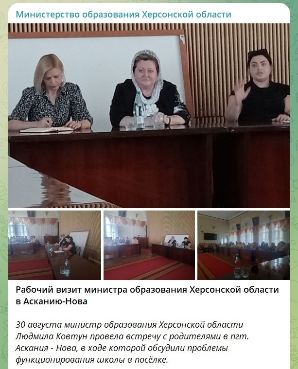 Жінка додала, що, за словами «міністерки», школу в Асканії-Новій планують відкрити чи то 1 жовтня, чи то 1 листопада. І оскільки працювати в ній нікому, то в селище мають приїхати російські вчителі-гастролери.