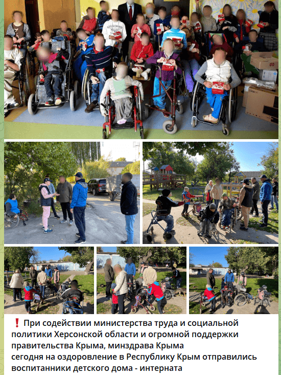 До окупації в закладі знаходилося 105 вихованців — 65 неповнолітніх і 40 повнолітніх. Самі колаборанти говорять, що зараз «опікуються» 43 неповнолітніми вихованцями. І є нюанс. Тобто усі рішення за дітей приймає незаконна дирекція інтернату. Окрім того, самопроголошеному директору доводиться спростовувати інформацію, що він продає дітей із інвалідністю для трансплантації їхніх органів. Але, окрім його слів, у статті інших спростувань немає.Прочитати повний матеріал із коментарями колаборанта Віталія Сука можна тут.Політичні цілі під виглядом благодійності