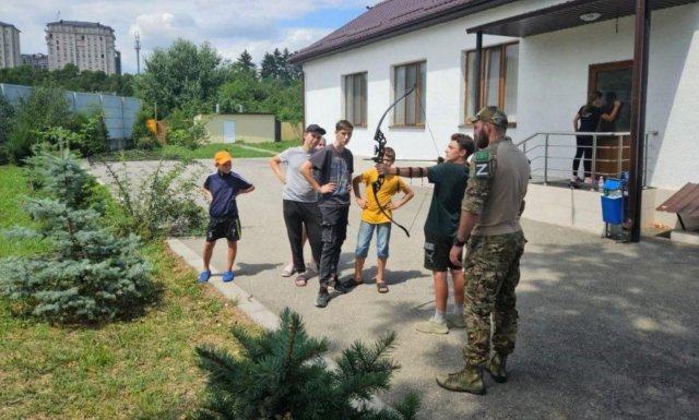 Там, цитата, «учні почули надихаючі історії про героїзм молодих людей, які повернулись з передової». Чи треба героїзм, аби вбивати беззахисних цивільних українців чи обкрадати покинуті будинки і квартири, «герої» навряд чи розповідали, але дітей все ж зацікавили.Виявилось, що Магомед Базієв вміє стріляти з лука і його мета - золото Паралімпійських ігор. Через міжнародну ізоляцію Росії він навряд чи на них потрапить, а от на Донбас добровольця взяли. Там окупанту і відірвало ногу (тому Паралімпійські).