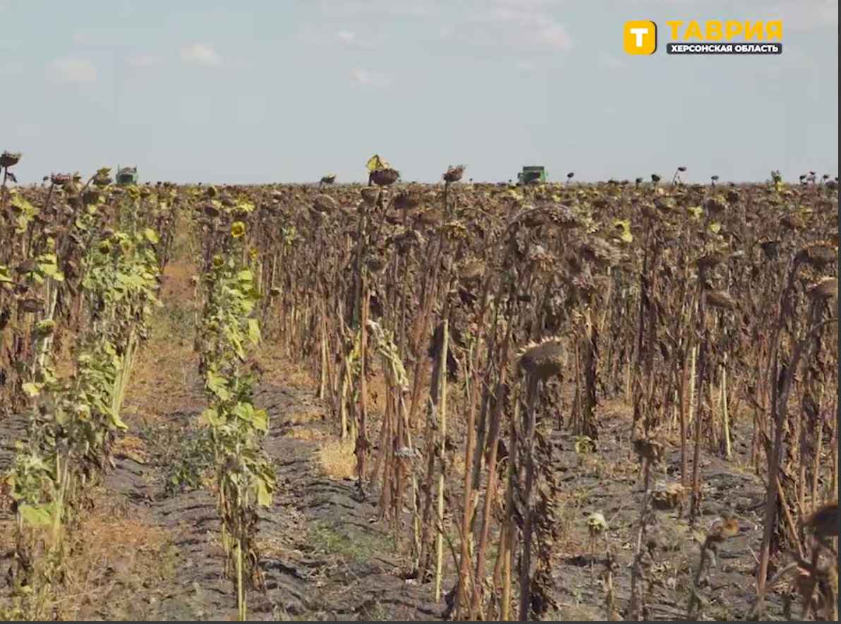 Ще в липні глава окупаційної адміністрації Херсонської області Володимир Сальдо на своєму Телеграм-каналі хизувався перспективами збору врожаю на захопленому Лівобережжі, та невдовзі радість затьмарили звістки з полів: посіви погоріли через аномальну спеку. Однак вже 16 серпня окупаційне міністерство радісно відзвітувало про зібрані буцімто більше мільйона тонн зернових.