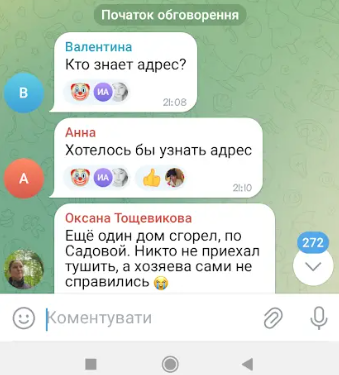 Так, у Дніпрянах унаслідок обстрілу сталася пожежа в одному з будинків. Як ідеться в повідомленні проросійського пабліка, співробітники райадміністрації почали гасити вогонь ще до приїзду “МЧСників”. Проте користувачі дотримувалися іншої думки: