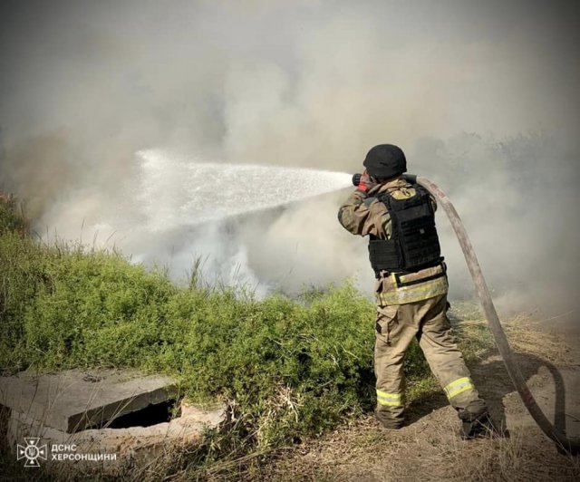 Рятувальники Херсонщини разом з місцевими пожежними охоронами 23 рази виїжджали на гасіння пожеж в екосистемах, що виникли через обстріли окупантів.