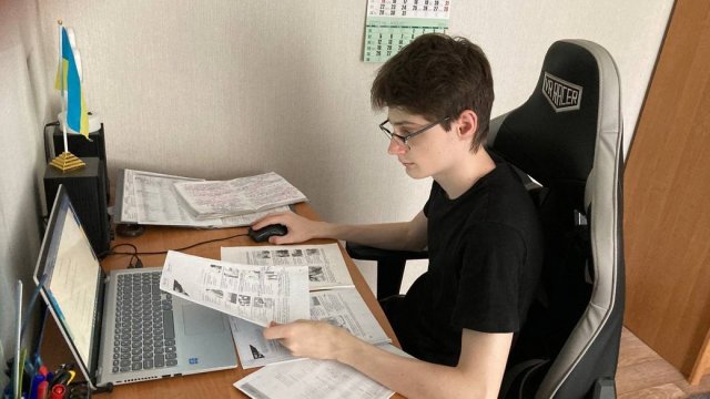 "Книжок не було ще з дев'ятого класу, точніше — з десятого, коли почалася війна. Я брав їх в інтернеті — всі книжки нам скидали вчителі. Я їх завантажував і працював з ними. Асинхронно і синхронно. Асинхронно — це коли ми працювали, наприклад, з Telegram або Google Class. Також у Zoom — з відео та камерою. Інколи я туди не виходив, але, в принципі, виконував усі письмові завдання. Є три обов'язкові: математика, історія, українська. Я ще обрав як додаткову англійську мову. Це й зрозуміло, бо я збираюся поступати на журналіста. З української мови у мене 200 балів, з історії України — 191, з англійської — 169, і 150 балів з математики", — сказав Максим.
