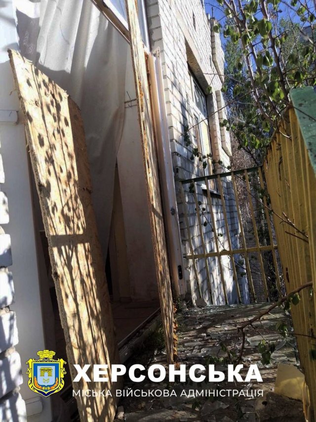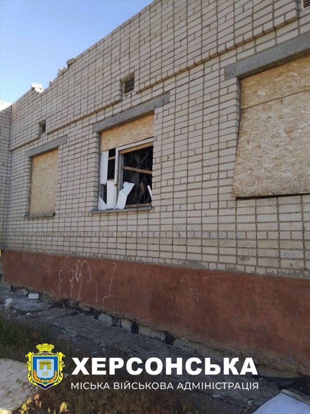 Як повідомила Херсонська МВА, вибуховою хвилею вибито 5 вікон, двері, пробито дах над однією з груп.