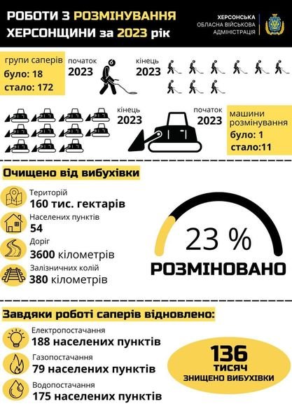 І не зупинимося, поки вся Херсонщина не буде розмінованою, а значить - безпечною", - зазначив начальник ХОВА.