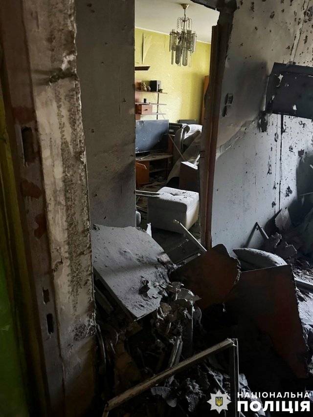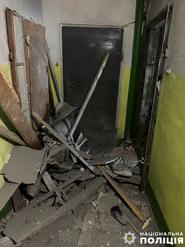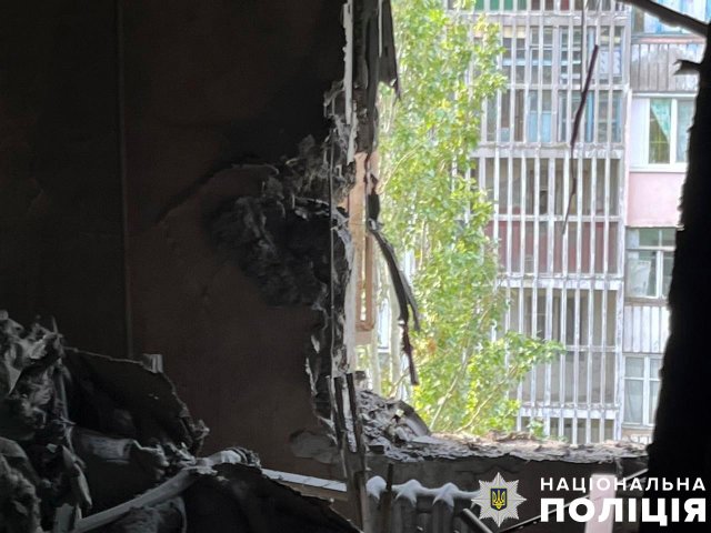У Дніпровському районі через скидання боєприпасів із ворожих безпілотників пошкоджено службовий автомобіль поліції та п’ять цивільних автівок. Артилерійським вогнем у цьому ж районі пошкоджено багатоповерховий та дев’ять приватних будинків.