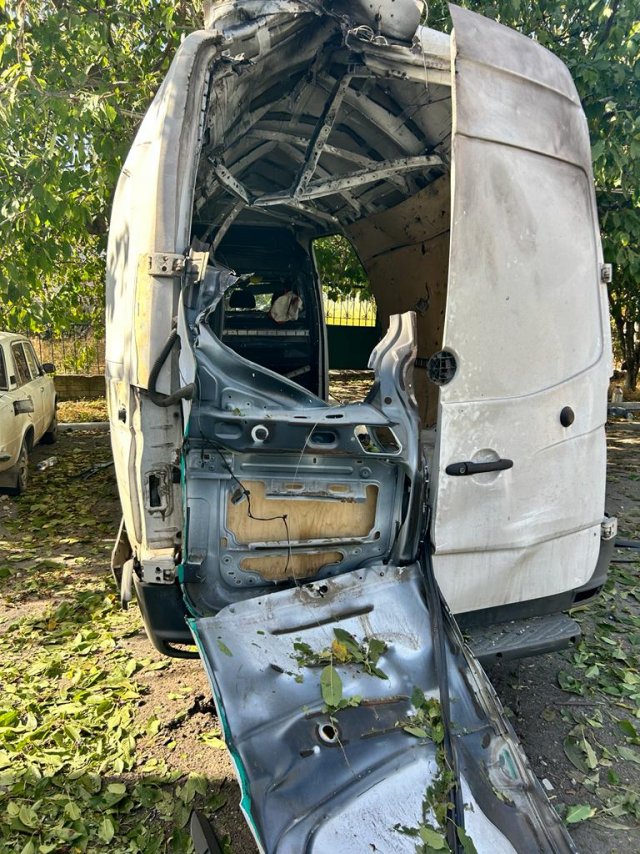 У Бериславі дронами-камідзе ворог атакував цивільний вантажний мікроавтобус, яким планували евакуювати майно музею. На щастя, обійшлося без жертв.