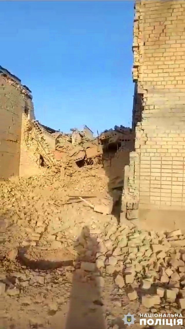На світанку з авіації противник завдав удари вісьмома керованими бомбами по населених пунктах Дар’ївської та Тягинської громад. Дві бомби влучили у будівлю дитячого садочка, вона повністю зруйнована.