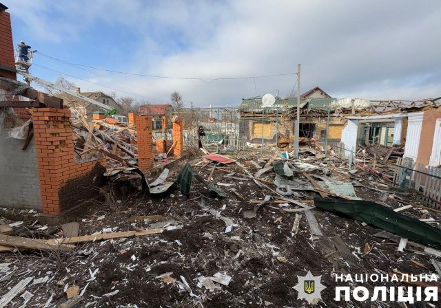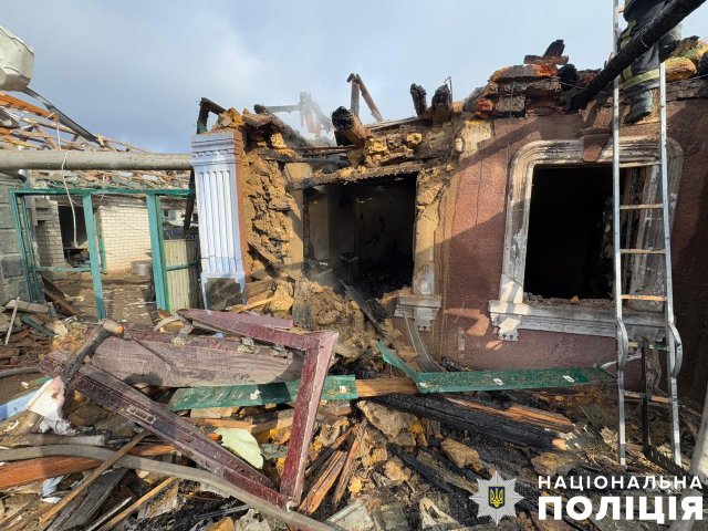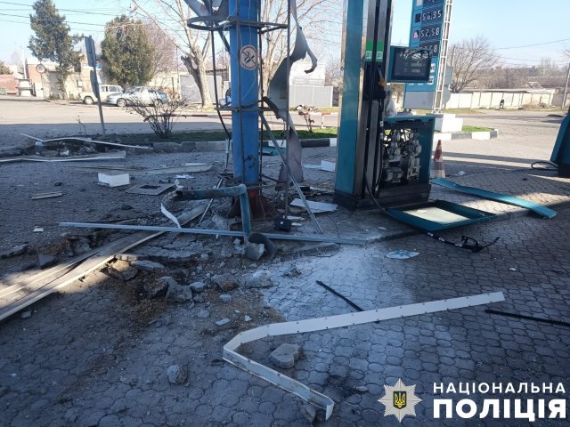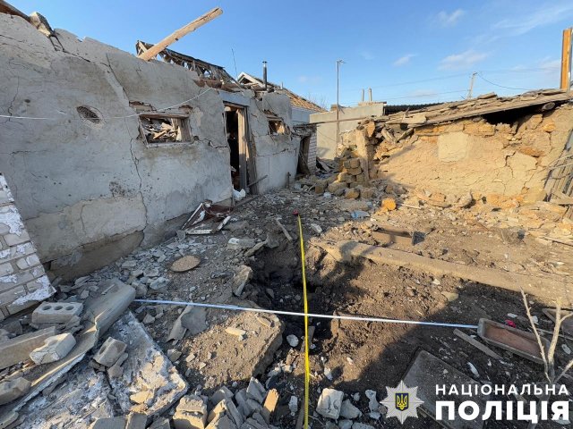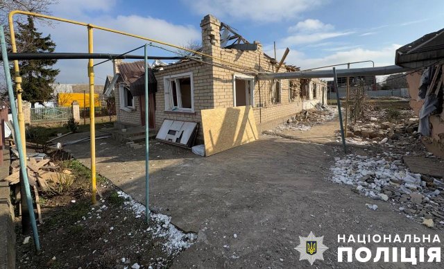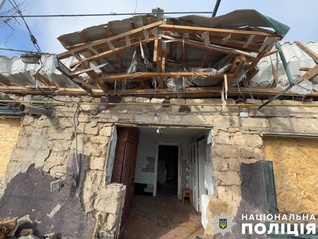 Берислав теж потерпав від скидів із БпЛА. Мінно-вибухову травму й уламкове поранення стегна дістав 48-річний чоловік. Також внаслідок удару пошкоджено приватний будинок.