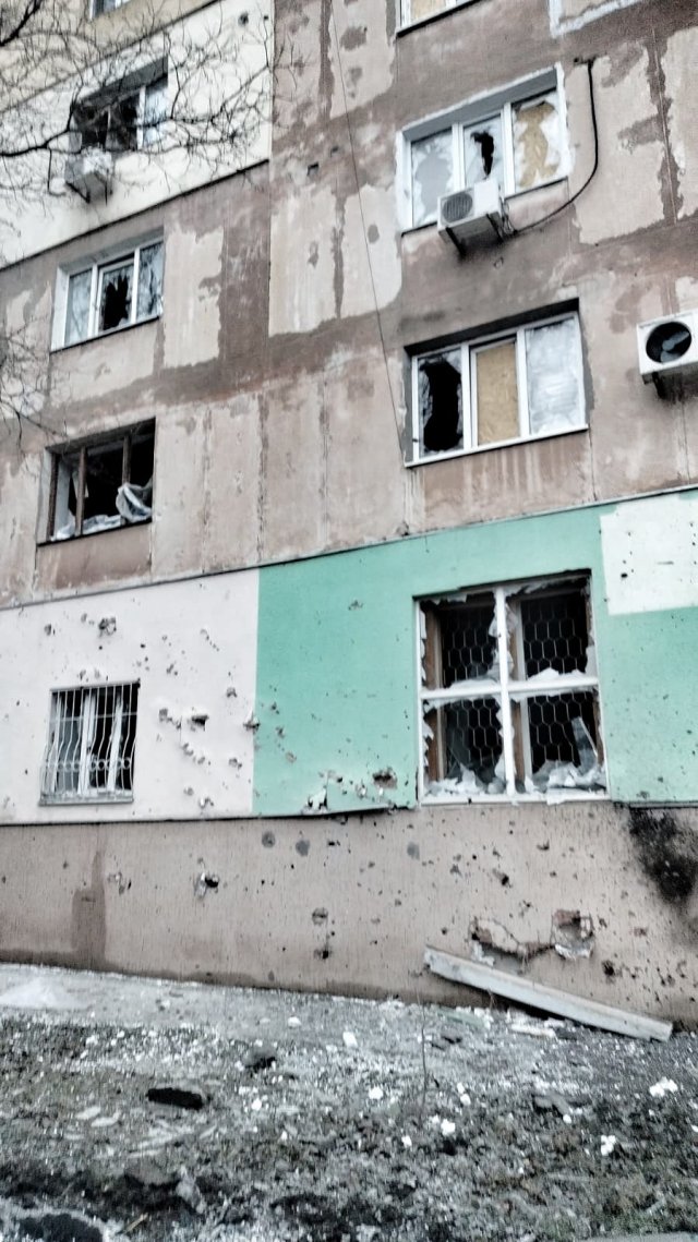 Артилерійський снаряд влучив у багатоповерховий будинок, внаслідок чого зазнав поранення 29-річний місцевий житель. Ніні він госпіталізований до лікарні. Також, перебуваючи на вулиці, осколкове поранення голови отримала 58-річна жінка, наразі вона перебуває у медичному закладі. Стан здоров’я постраждалої середньої тяжкості.