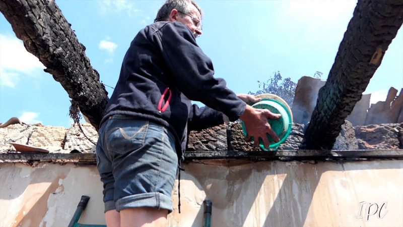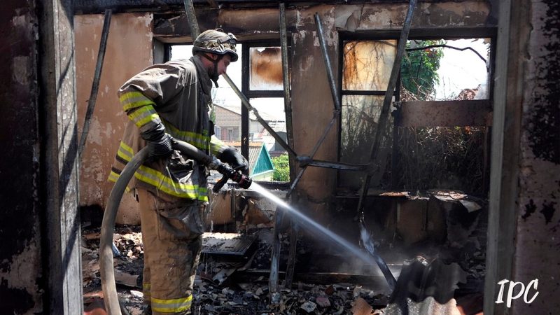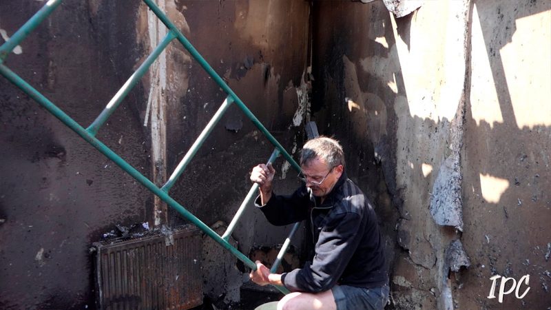 Херсонці намагаються загасити пожежі у своїх домівках після обстрілу міста запалювальними снарядами. Росіяни не змогли втопити Херсон у каховських водах, тому тепер прагнуть перетворити його на попіл.Фото: 03.08.2023 року. kherson.ipc.org.ua