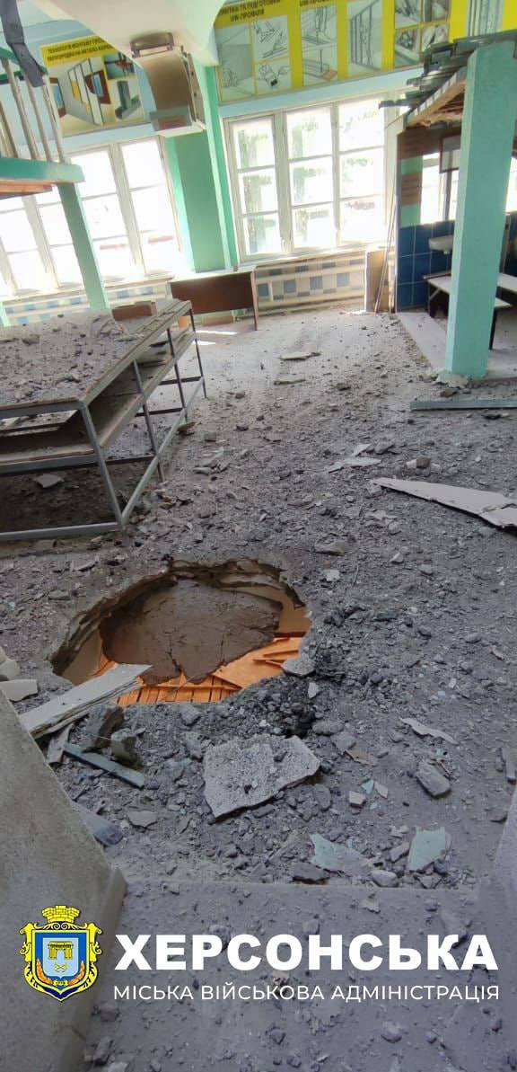 Під час чергового ворожого обстрілу Херсона учора ввечері було пошкоджено будівлю виробничої майстерні одного із закладів профтехосвіти.