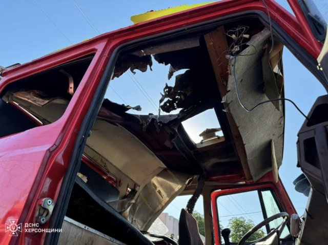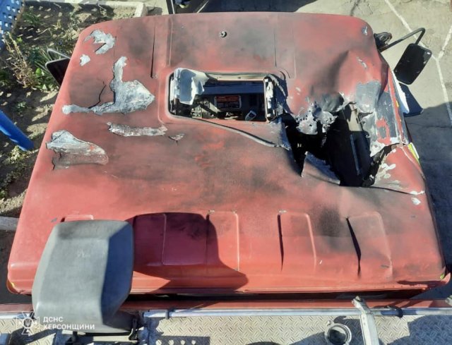 Сьогодні зранку під час гасіння однієї з пожеж, що виникла через ворожий обстріл на території Білозерської територіальної громади, окупанти здійснили скид вибухового пристрою з БПЛА прямо по автомобілю вогнеборців. На щастя, за лічені секунди рятувальники встигли зайти в безпечне місце, тому з особового складу ніхто не постраждав.