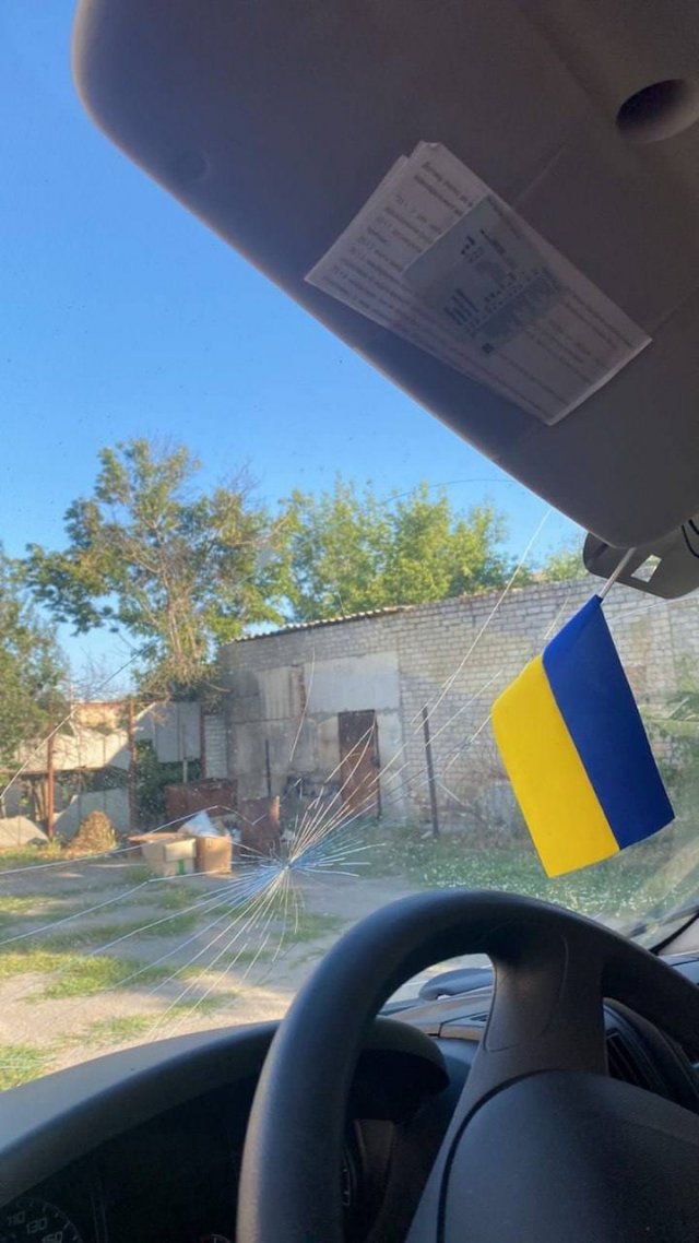 Сьогодні, 9 червня Прокудін опублікував фото авто швидкої допомоги, яке вчора ввечері постраждало від атаки російського дрона.