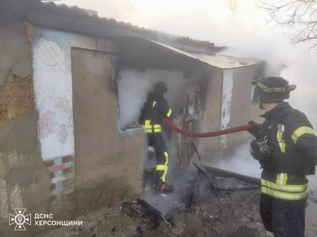 Протягом доби рятувальники Херсонщини ліквідували п’ять пожеж дві з яких виникли через ворожі обстріли.Про це повідомляє у Фейсбук Головне управління ДСНС України у Херсонській області.Після ворожих атак в с.Білозерка горіло гаражне приміщення на приватному подвір’ї, ще за однією адресою загорілась газо-повітряна суміш з пошкодженої газової труби вогонь перекинувся на дах будинку.