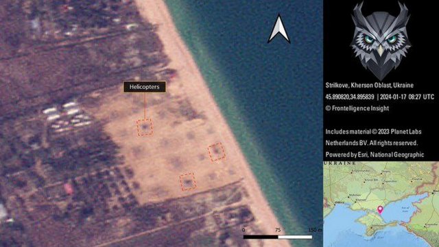 рашисти продовжують використовувати базу відпочинку "Хвиля" на Арабатській стрілці як місце дислокації для своїх гелікоптерів Нагадаємо, на початку грудня повідомлялося, що рашисти ховають свої гелікоптери буквально на пляжі в Криму, влаштувавши там своєрідну "секретну" авіабазу", про що свідчили супутникові знімки – окупанти стягнули туди свою авіацію з авіабази "Чаплинка".